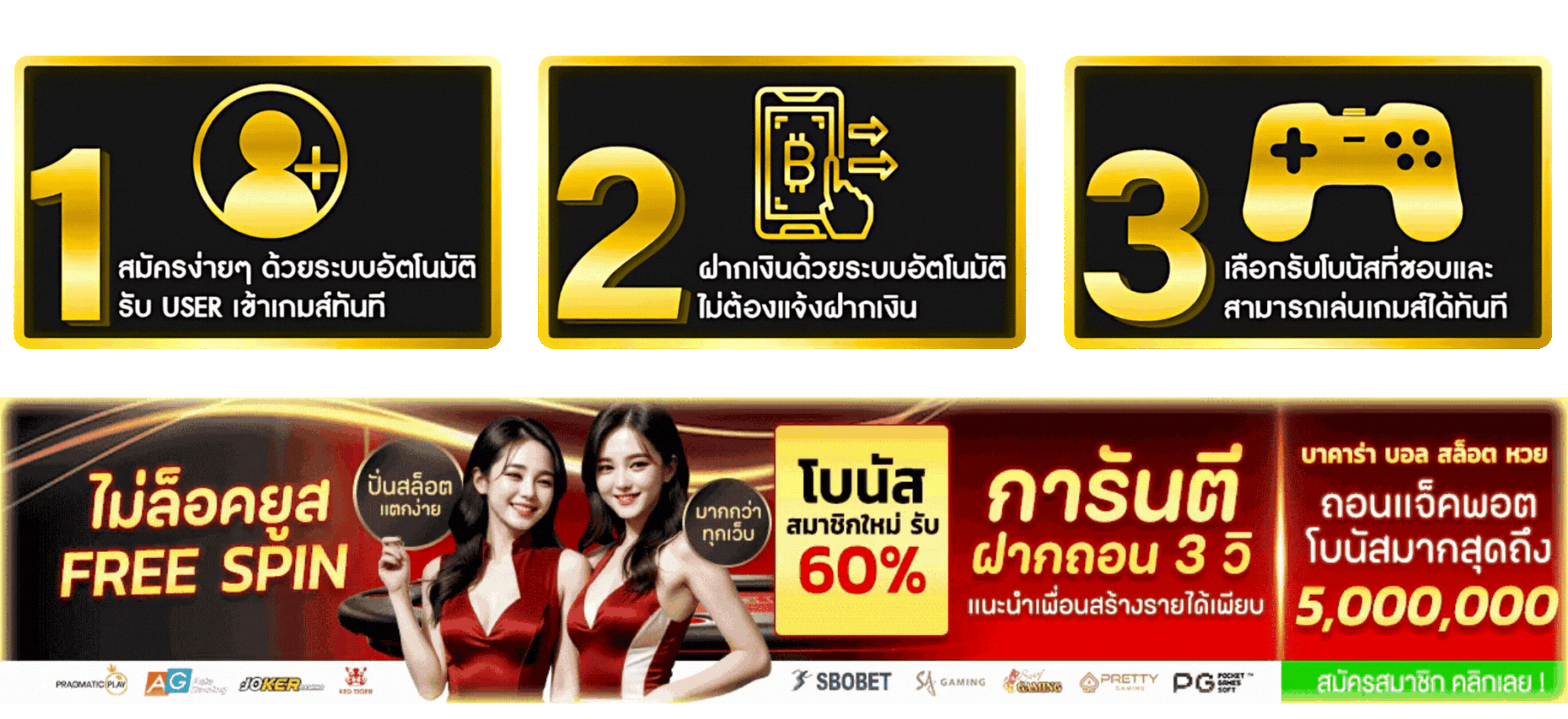 ตอบ : มีโบนัสต้อนรับสมาชิกใหม่ 100% โปรคืนยอดเสีย เครดิตฟรี และกิจกรรมแจกรางวัลพิเศษประจำเดือน